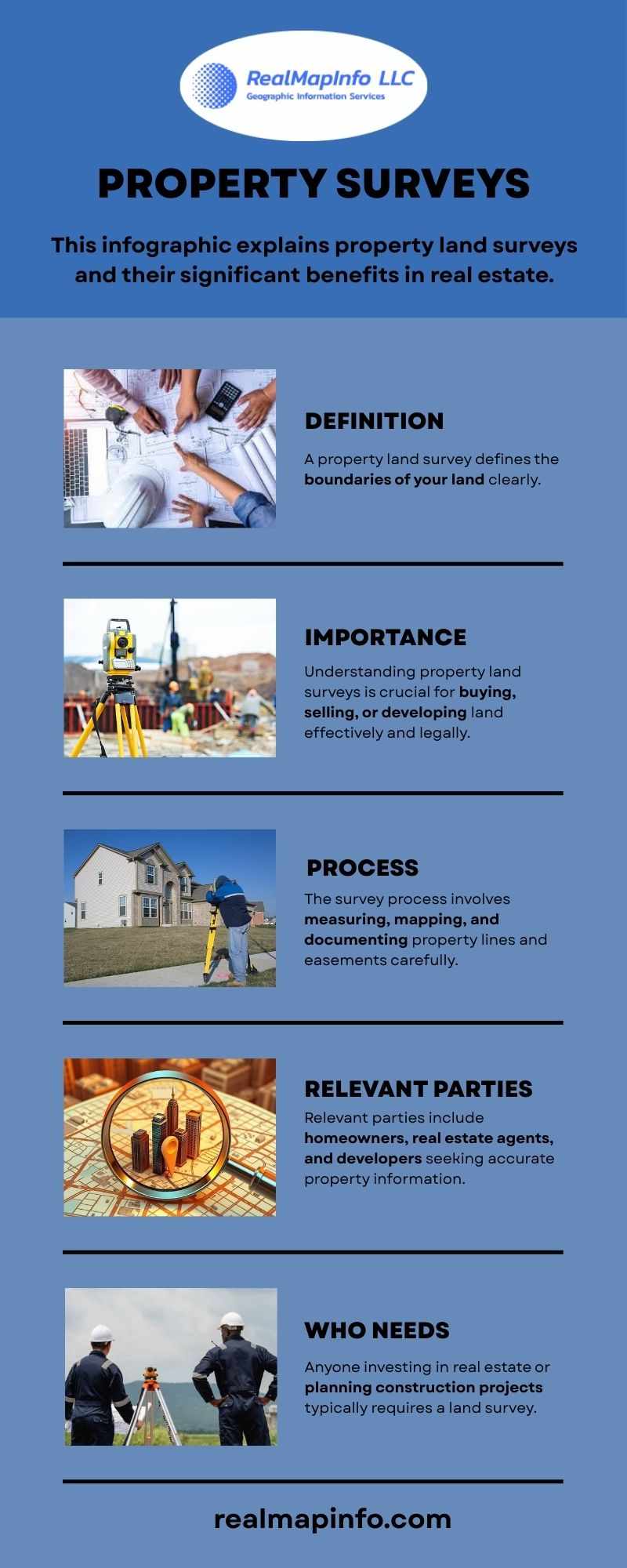A Property Line Survey is an essential step for homeowners, builders, and real estate professionals to clearly define land boundaries. This survey provides accurate measurements and mapping to determine where your property begins and ends, ensuring there are no disputes with neighbors over fences, landscaping, or construction projects. At RealMapInfo, we specialize in delivering precise, data-driven surveys that comply with local regulations and support smooth property transactions. Whether you’re planning to buy, sell, or develop land, a Property Line Survey gives you peace of mind and legal protection for your investment.